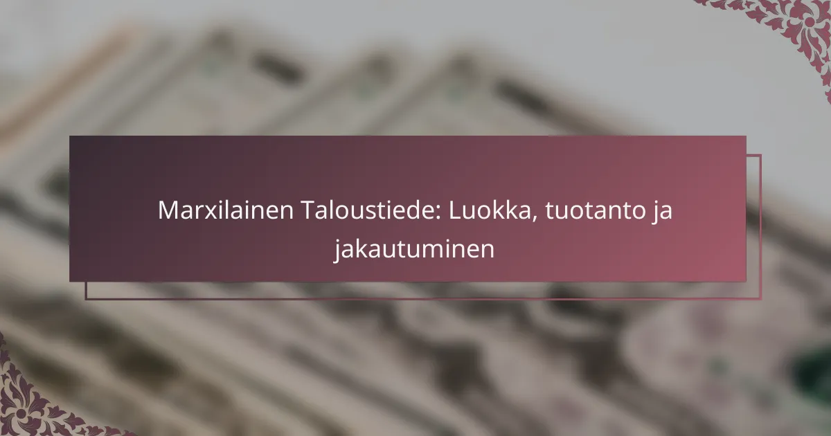 Marxilaisen taloustieteen keskeiset käsitteet keskittyvät luokkiin, tuotantoon ja resurssien jakautumiseen. Nämä elementit muodostavat perustan ymmärtää taloudellisia suhteita ja luokkataistelua, joka on ollut keskeinen osa historiallista kehitystä.